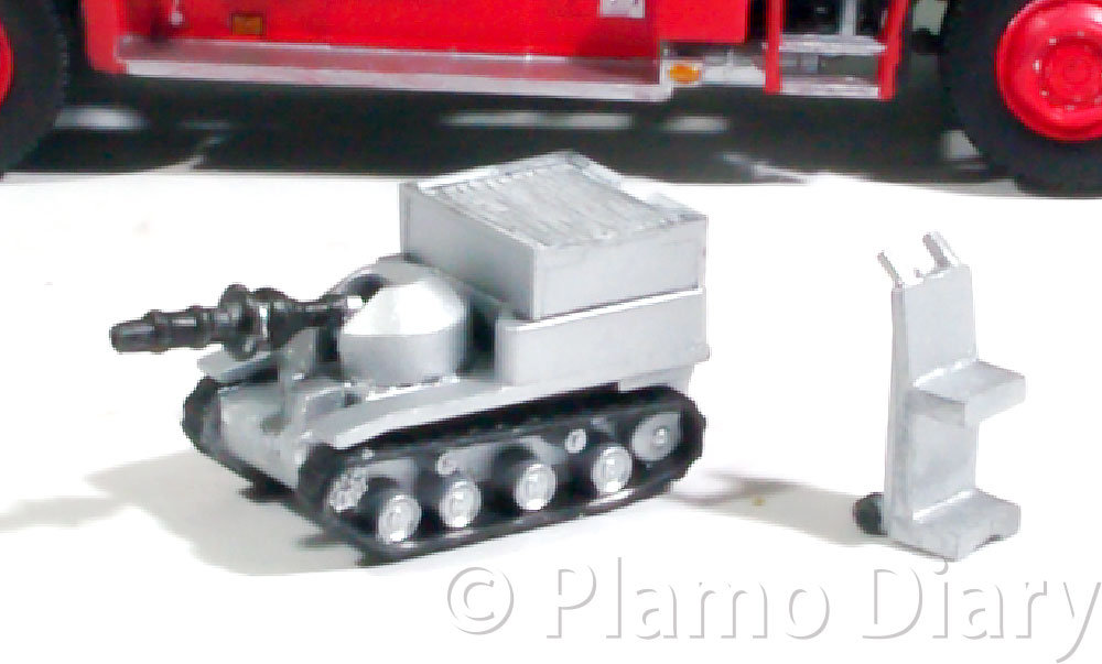 ポンプ室に付く細かなパーツの塗装と取り付けをしました。また車体後部に格納される自走式放水砲を作りました。まるで小さな戦車ですね。