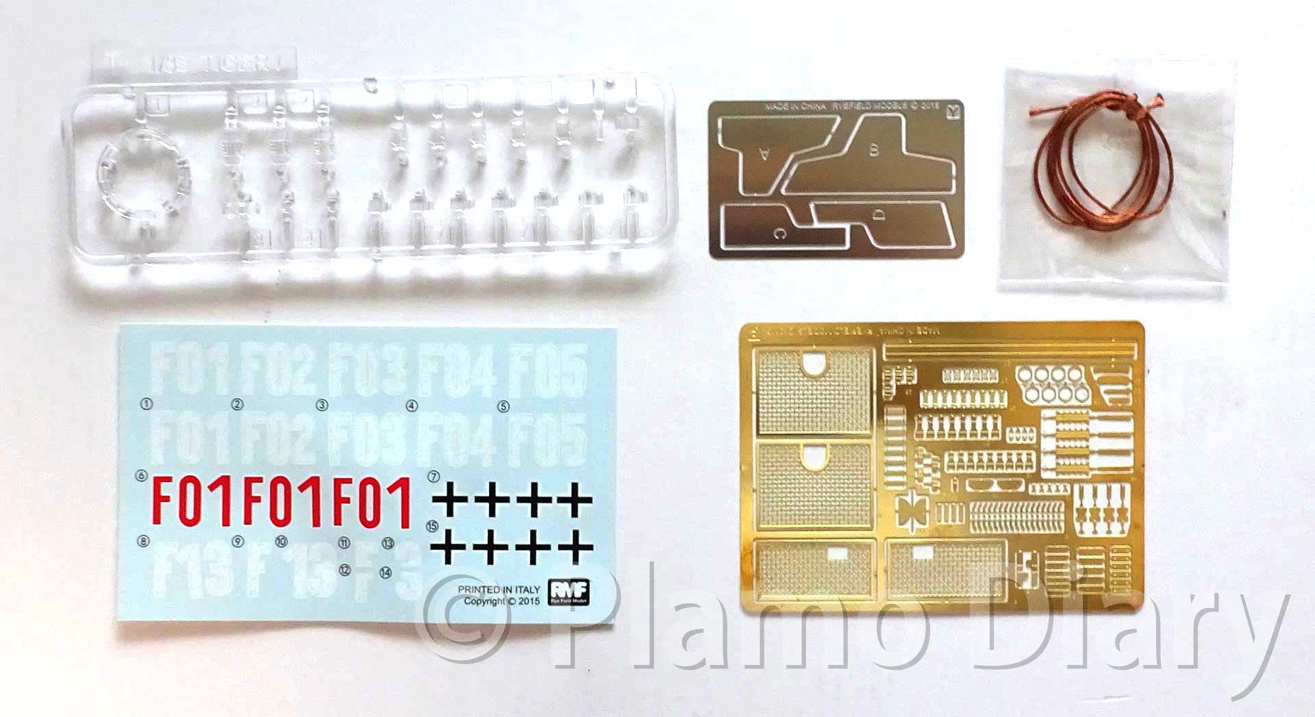 特にたくさんボーナスパーツが入っているわけでは無いのですが、ご覧の様に、クリアパーツやエッチングパーツ、銅線のタグワイヤーなんかも入っています。これだけあれば十分です。特にエッチングパーツはOVMのクランプなんかも入っています。こちらはもう組み立てる自信が無いので、たぶん使いません。また車輌によっては、履帯交換用のワイヤーを装備していない車輌もあり、その車輌用に履帯交換ワイヤーの留め具がエッチングパーツで用意されているようです。
