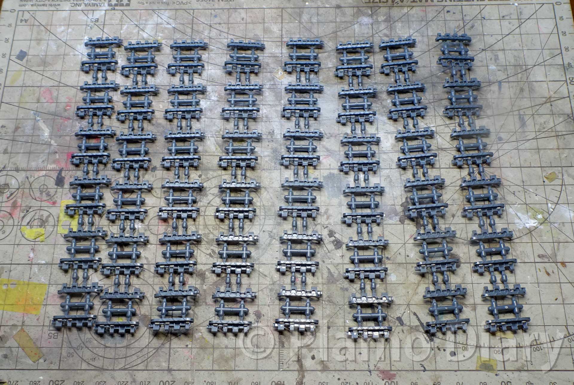 今回は履帯の組み立てと塗装です。足回りの汚しと組み付けをする予定でしたが、先に履帯を組みたてることにしました。