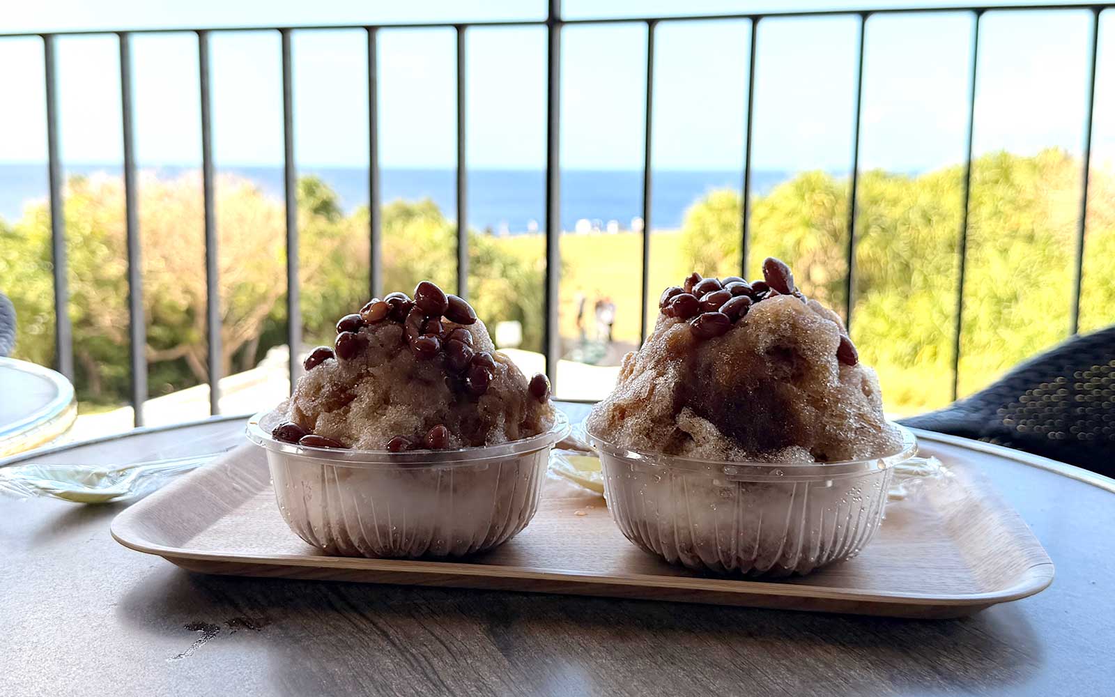 この日は長袖ではあるもののTシャツいちまいだったのですが、日差しが強く熱いくらいです。そんなわけで、休憩は黒糖と金時豆のかき氷です。ふわふわの氷と金時豆、黒糖のシロップがとても美味しかったです。まさか1月にかき氷を食べることになるとは思いませんでした。
