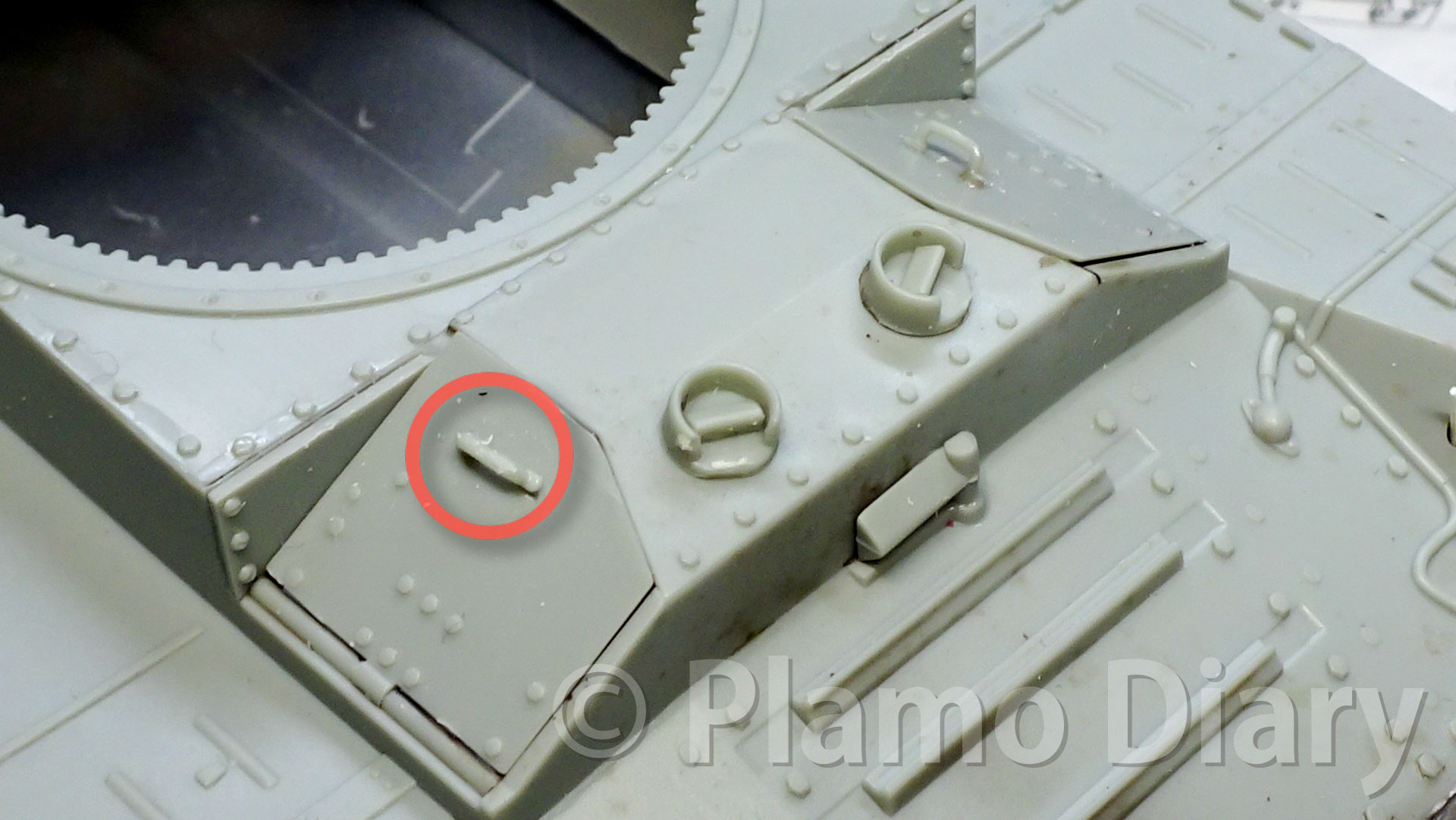 車体の細部を組み立てていきます。今回は運転席のハッチとエンジンデッキ、そして車体の右側の装備類を組み立てました。