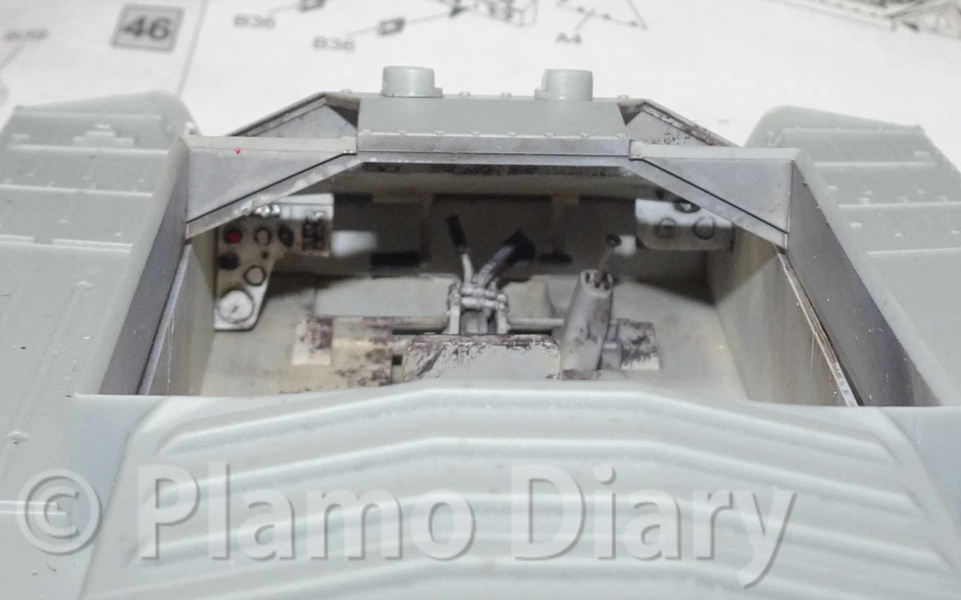 車体の上下を接着してしまってから、こんなイラストをネットで見つけました。椅子やレバー、ペダル類は全部まっ黒です。また黒く塗ったペリスコープは逆に真っ白です。ドイツ軍とはずいぶんと違います。