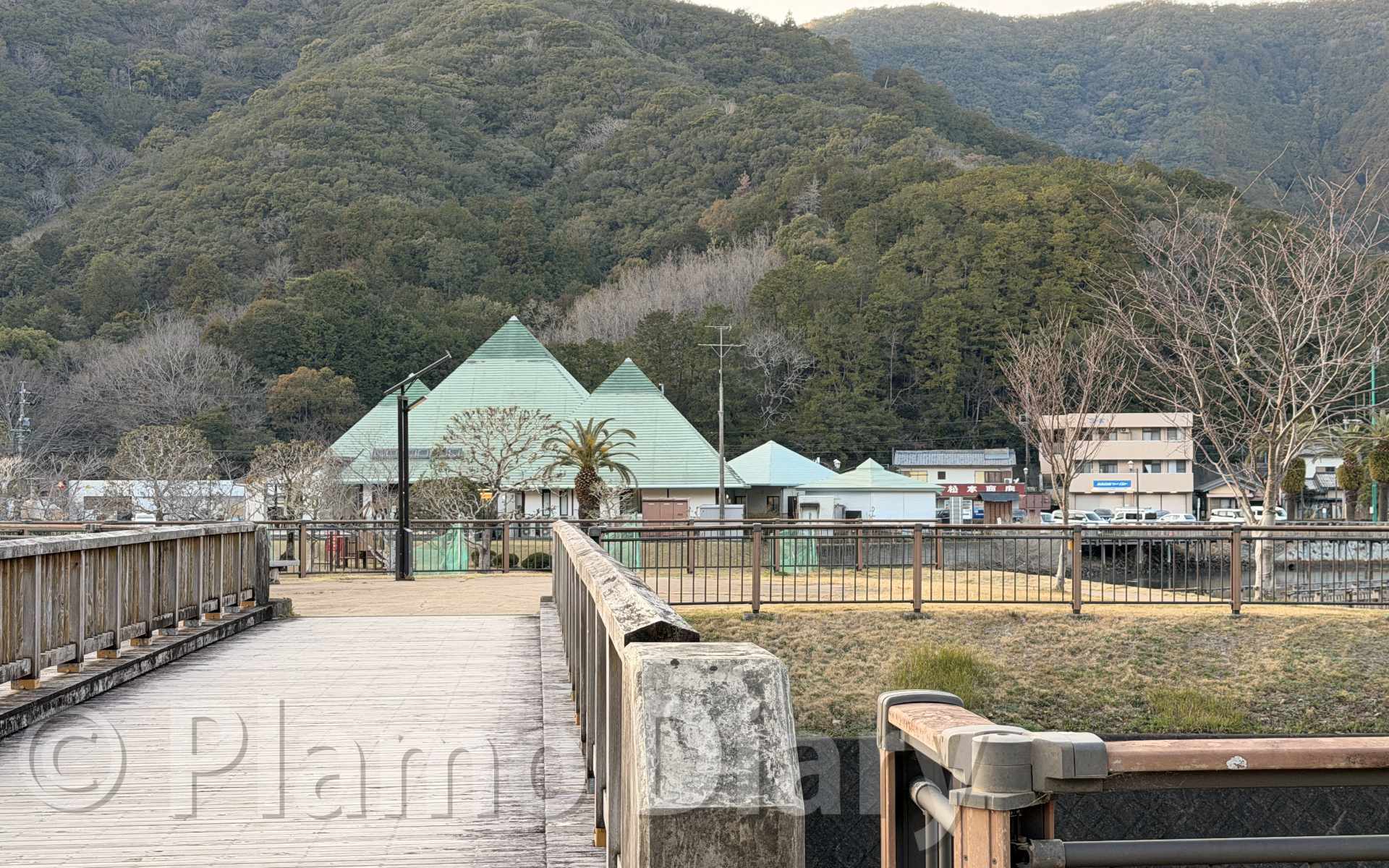 今回のコースの出発地点は、三重県紀北町にある片上池公園です。道の駅の「紀伊長島まんぼう」もこの公園にあります。まんぼうのあたりは車も多いので、池の反対側にある「たぶの杜広場」に陣取ることにしました。「たぶ」というのはタブノキのことで、海岸近くに生える大きな木で、丸太船の材料になるそうです。