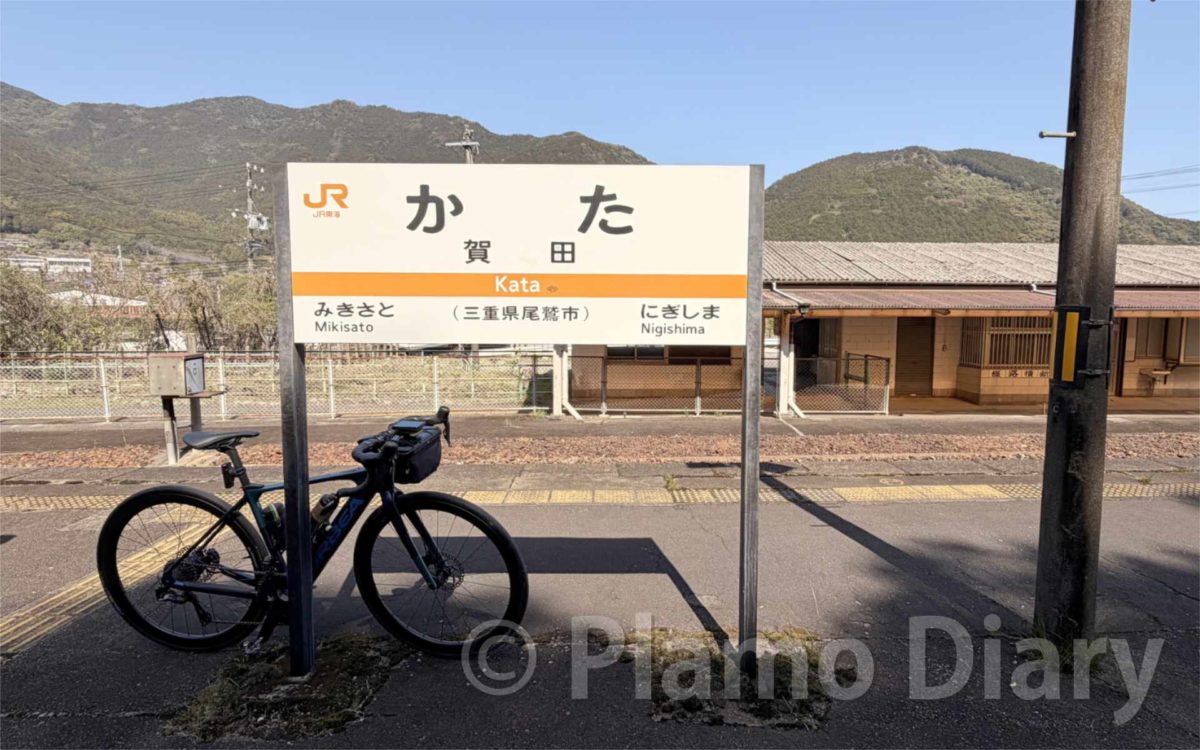 翌朝は簡単な朝食を済ませてからサイクリングに出発です。目指すのは尾鷲市にある賀田駅です。特に何があるってわけでもないのですが、距離が64kmとほどほどだからです。駅を目指すのは、帰りはサイクルトレインで紀伊長島に帰るつもりだからです。